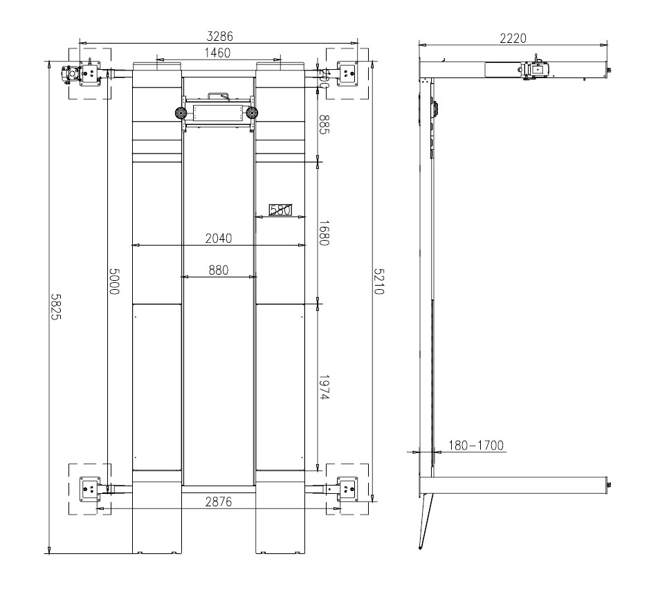 7) Jarak dalam platform pengangkat penyesuaian untuk kendaraan yang berbeda dengan tapak yang berbeda.