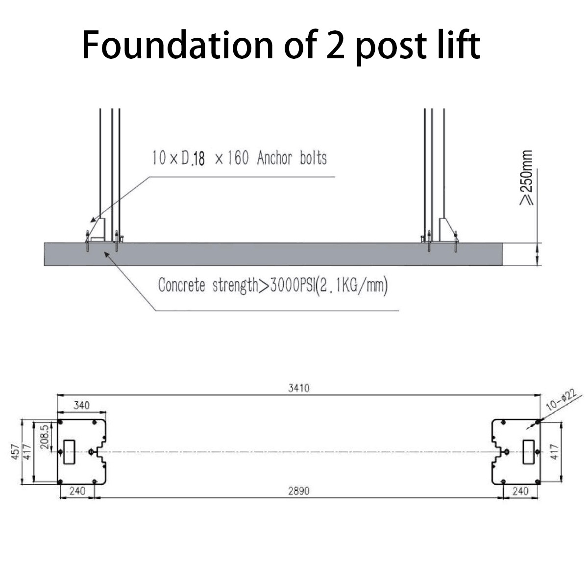 Spesifikasi teknis lift mobil 2 pos listrik: