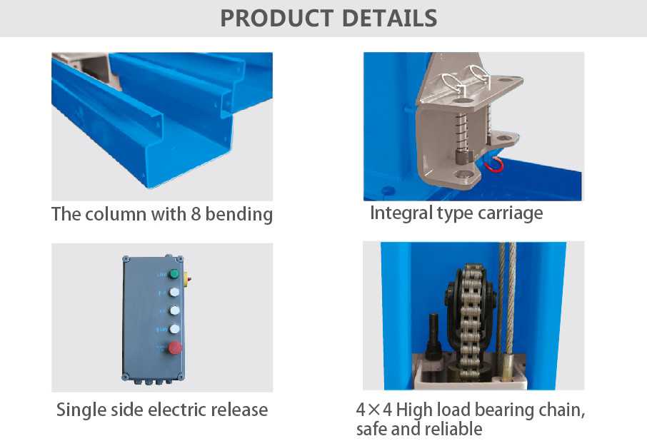 1) dua pasca angkat hidrolik memiliki keuntungan dari operasi sederhana, keamanan dan kehandalan,