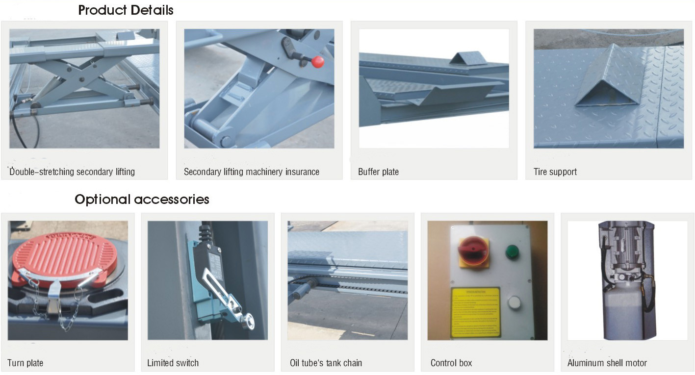 7) Jarak dalam platform pengangkat penyesuaian untuk kendaraan yang berbeda dengan tapak yang berbeda.