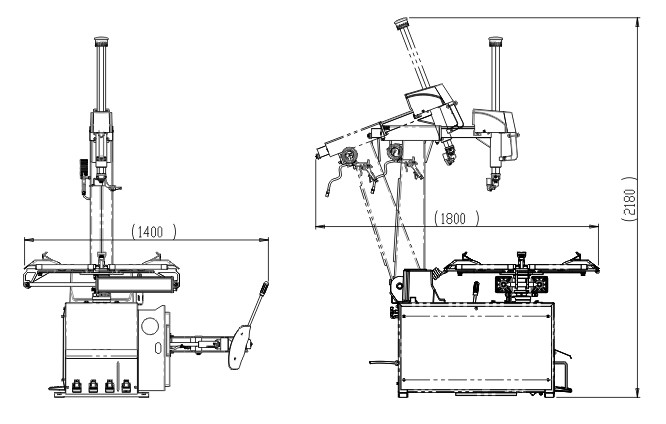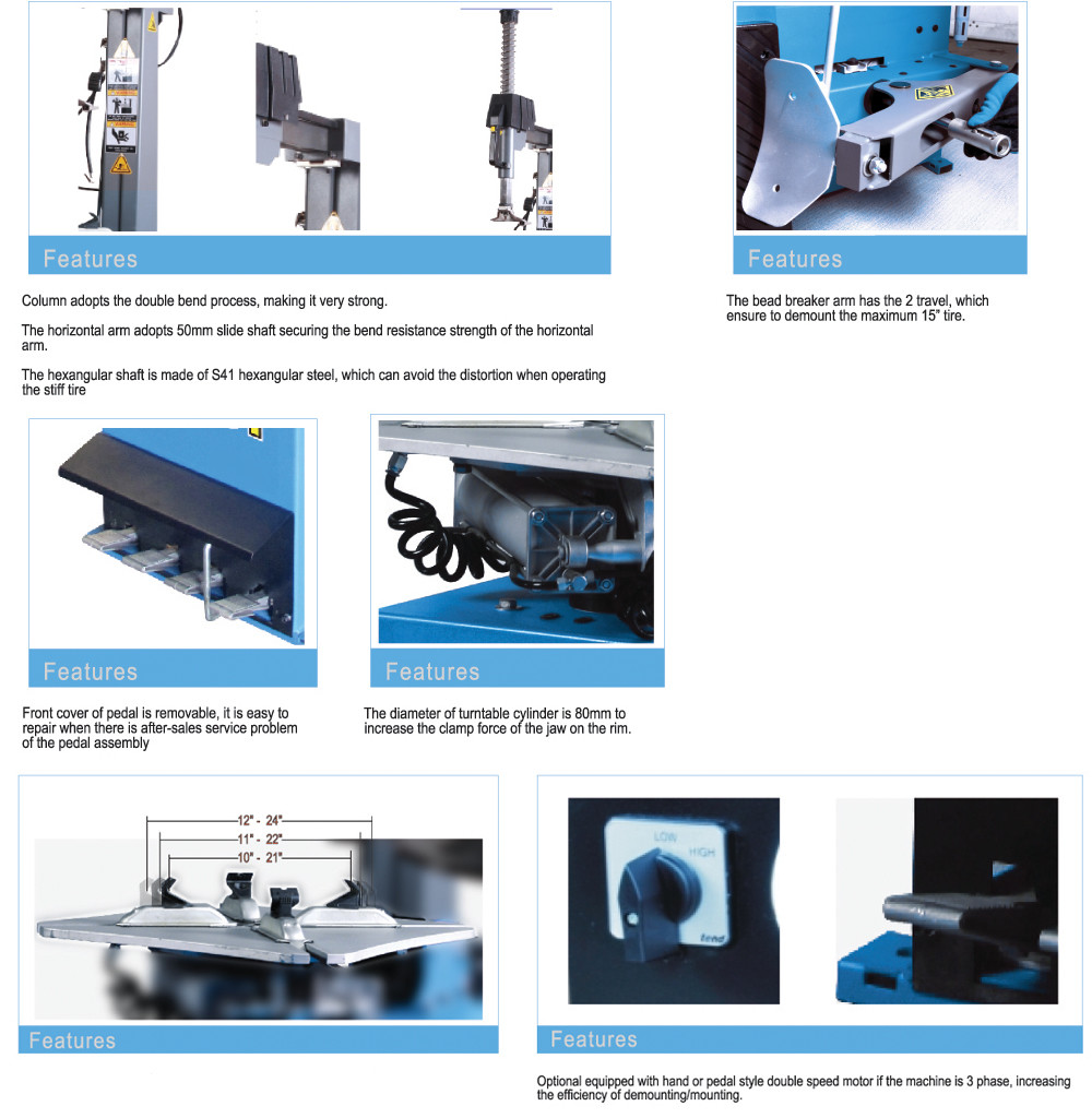 1) Pengubah ban otomatis, kemiringan ke belakang dan ke depan kolom dan kunci kolom dapat diselesaikan secara pneumatik.