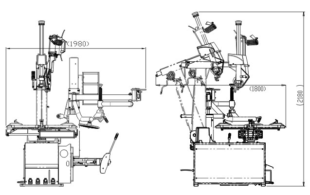 1) Pengubah ban otomatis, kemiringan ke belakang dan ke depan kolom dan kunci kolom dapat diselesaikan secara pneumatik.