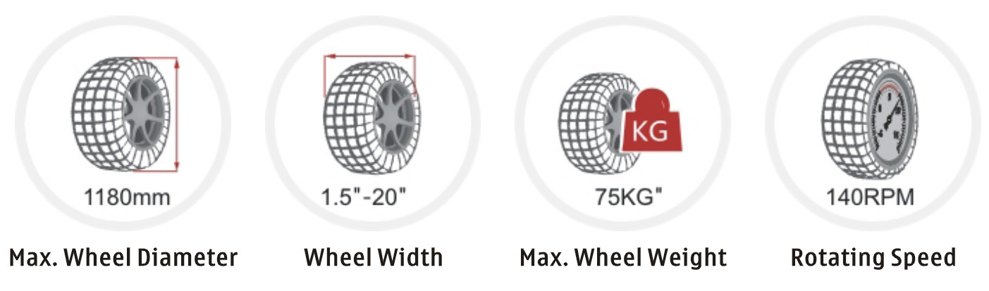 | Diameter roda maksimum | 1000mm | 1180mm | 1180mm | 1180mm | 1180mm |